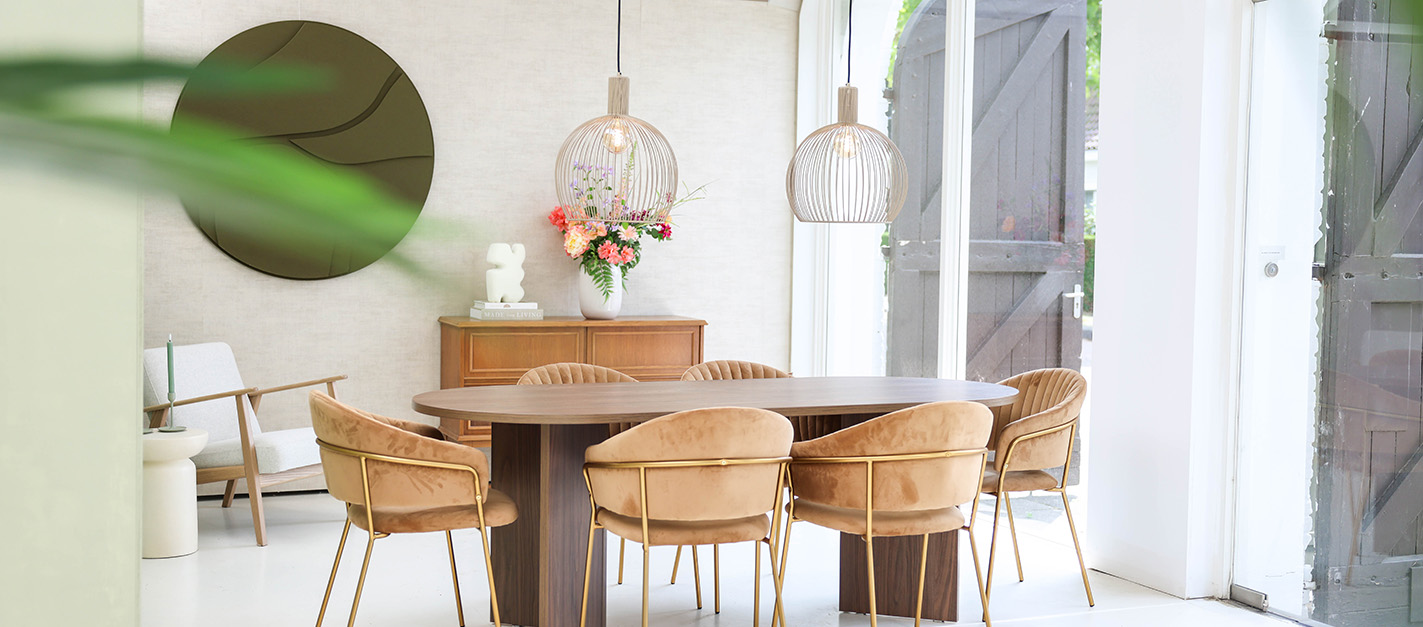- Combineer in de eetkamer basis- en sfeerverlichting met een mooie hanglamp boven de eettafel, zoals de Zubeda hanglamp.