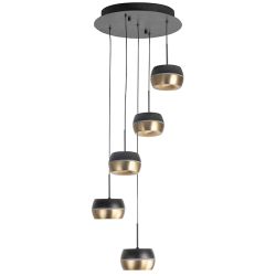 De moderne en chique Nova hanglamp in zwart/goud is één echte eyecatcher en biedt niet alleen stijl, maar ook functionaliteit aan! De vijf lichtbollen met geïntegreerde LED leveren samen zo'n 2.250 lumen aan warm wit licht in 2.700 kelvin. Ideaal voor het creëren van een gezellige ambiance in elke woonruimte. De Nova hanglamp is gemonteerd op een rechthoekige balk van 107 x 12 cm waaraan de vijf lichtbollen hangen die je in de gewenste lichtsterkte eenvoudig kunt aanpassen met een externe muurdimmer. Perfect voor boven de eettafel, in de woonkamer, eetkamer of keuken, waarbij de hoogte instelbaar is tot max. 160 cm. Deze moderne chique hanglamp een uitstekende keuze voor wie op zoek is naar elegantie in een moderne, hotel-chique interieur. Voeg een vleugje luxe en moderniteit toe aan uw interieur met de Nova hanglamp en bekijk ook de ronde uitvoering van de Nova hanglamp voor bijvoorbeeld in je hal of trappengat. Hiermee maak je een passend geheel in je interieur!