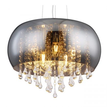 De hanglamp Pearl is door het spiegelglas en glazen kristallen een schitterende hanglamp voor een modern of klassiek interieur. De spiegelglazen kap wordt door het inschakelen van de verlichting wat transparanter waardoor de pegels mooi tot hun recht komen. Deze met chroom afgwerkte lamp is voorzien van 5 E14 fittingen welke ieder geschikt is voor maximaal 25 watt. De kap heeft een doorsnee van 44 cm en 34 cm hoog. De lamp is door middel van de 3 staalkabels in te stellen tot een maximale lengte van 120 cm hoog. Merk: Globo