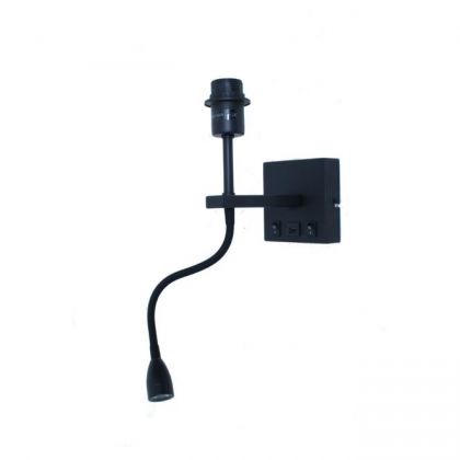 De Quad wandlamp is uitgevoerd in de kleur zwart met een flexibele leesarm. De maximale reikwijdte van deze leesarm is 34 cm. De wandlamp is voorzien van twee schakelaars en een USB-poort op de voet. Hierdoor zijn de twee lampen apart te bedienen en kan een telefoon met een USB-kabel worden opgeladen. Om de wandlamp tot zijn recht te laten komen, kan je het beste kiezen voor een kapje met een diameter van 20 cm. De lamp is voorzien van een E27 fitting voor maximaal 40 watt voor zowel halogeen- en LEDlampen. De leesarm is voorzien van geïntergreerd LED van 3 watt. De Quad wordt exclusief kap en snoer geleverd. Merk: Artdelight