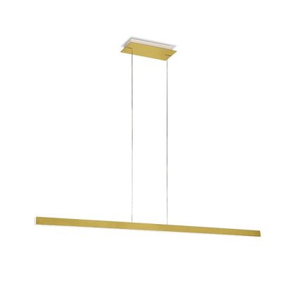 Deze Syrio hanglamp heeft een elegant design met een verfijnde goud-kleurige afwerking. Plaats deze hanglamp boven de eettafel voor een stijlvolle uitstraling, of hang hem in uw kookeiland voor functionele verlichting. Deze minimalistische Syrio hanglamp is 135 cm lang, 2,4 cm breed en de hoogte is verstelbaar van 70 tot 240 cm. De bovenbak is 36 cm lang, 14,5 breed en 4,5 cm hoog. Deze elegante gouden hanglamp is voorzien van dimbare LED in de lichtkleur 2.700 kelvin en de totale lichtsterkte is 3.200 lumen. Zo heeft de lamp aan zowel de onderzijde als de bovenzijde een sensor waarmee de lamp te dimmen is, zo zijn 'up & down' dus afzondelijk bedienbaar. Door uw hand boven de sensor te houden zal de lamp van lichtsterkte veranderen, zodra de lichtsterkte gewenst is haalt u uw hand weg. Tevens is deze sensor te gebruiken als aan/uit-schakelaar. Deze hanglamp is ook beschikbaar in de kleur brons of in een grotere maat, namelijk 161 cm!